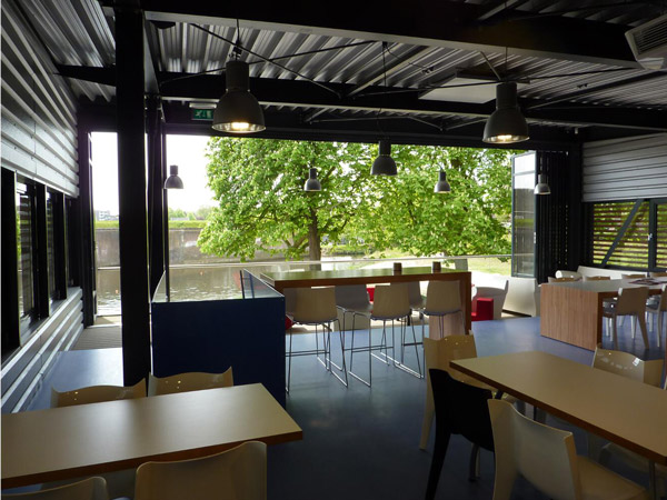 Maar eenmaal in gebruik kunnen alle deuren open en krijgen ook roeiers in de kantine contact met buiten door de schuifpui die over de volle breedte geopend kan worden.