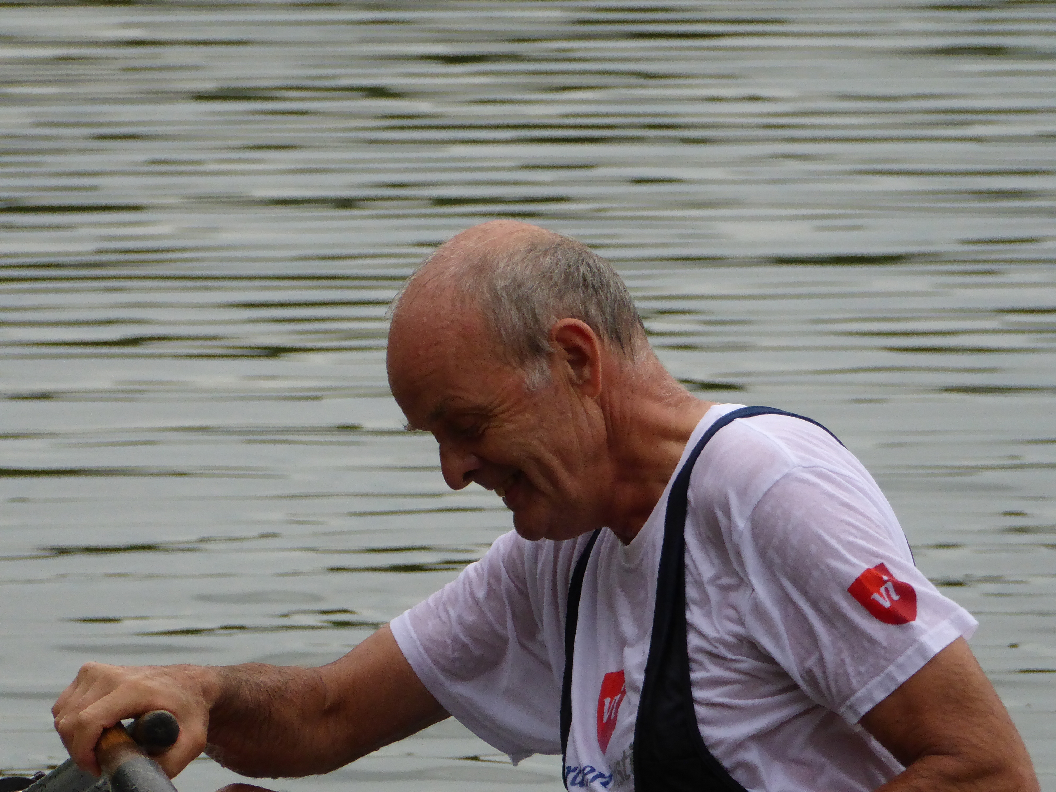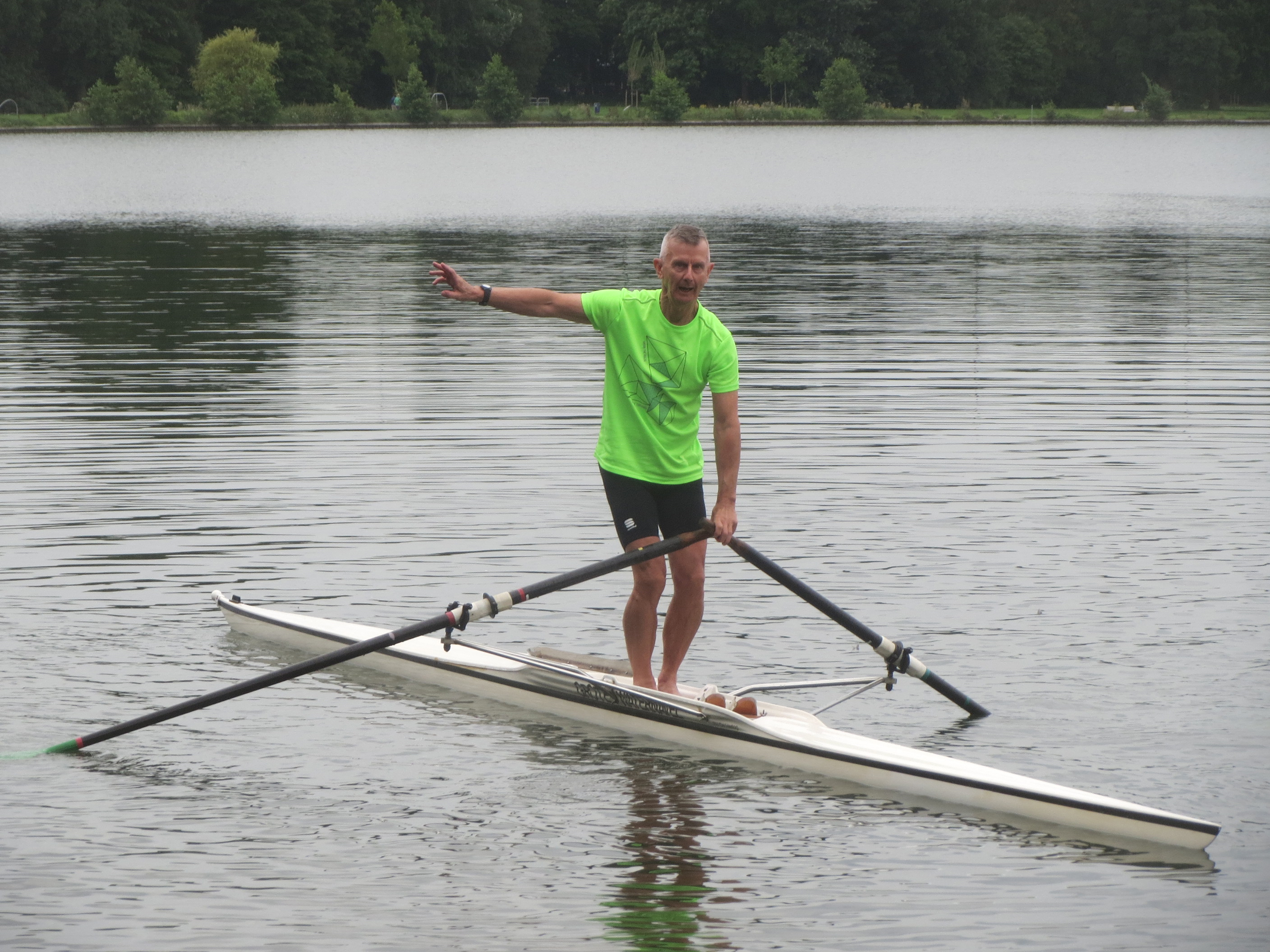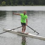 Het was een nat feestje in de Oosterplas op 1 augustus. Veertien midwekers (taaie ouwe knarren, wát je zegt) stortten zich beurtelings te water om vervolgens te proberen zich weer terug te worstelen in hun skiff. Daartoe hadden zij de Ed Omschlager en de Grote Waterspektakel meegenomen.