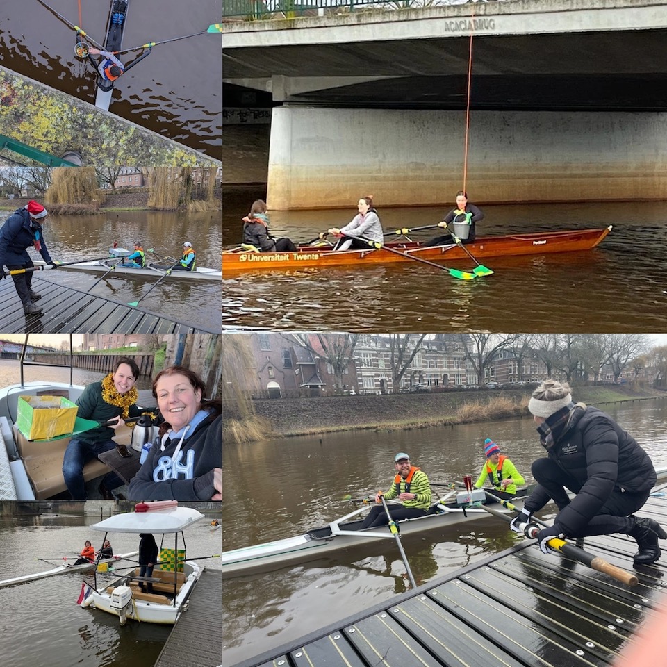 Meer dan honderd roeiers in skiffs en tweetjes werden door leden van de activiteitencommissie, 5e Stop en bestuur getrakteerd op fortunecookies vanaf de Acaciabrug, oliebollen bij de Tramkade en een glaasje bubbels bij het Bolwerk, als alternatief voor de nieuwjaarsreceptie.