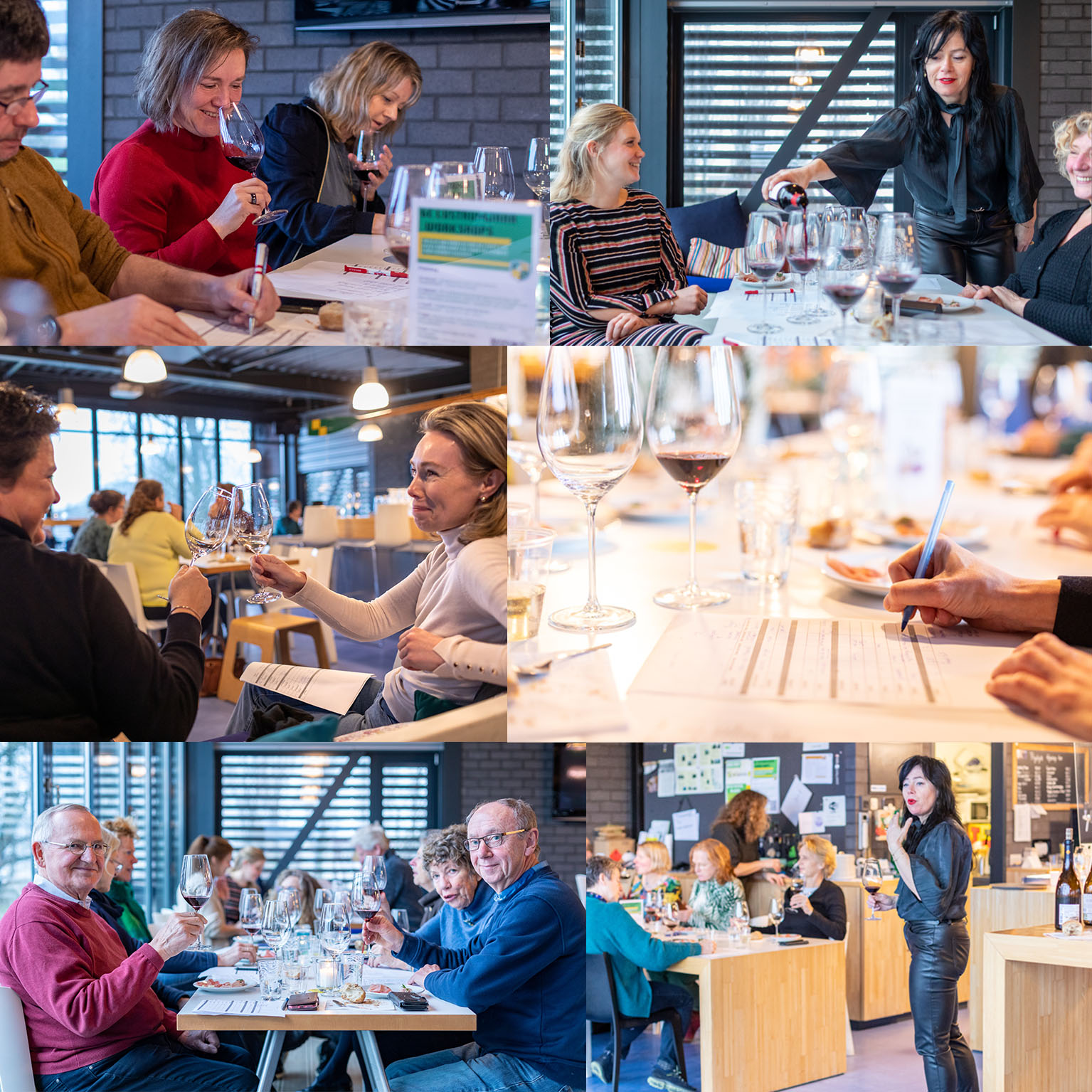 Saskia de Kort, sommelier in opleiding, wist haar passie voor wijnen enthousiast en kundig uit te dragen. De (30!) deelnemers kregen een zestal wijnen van het Iberisch schiereiland te zien, ruiken en proeven. Een zorgvuldig gekozen bijpassend hapje had vervolgens steeds een verrassende invloed op de smaakbeleving.
