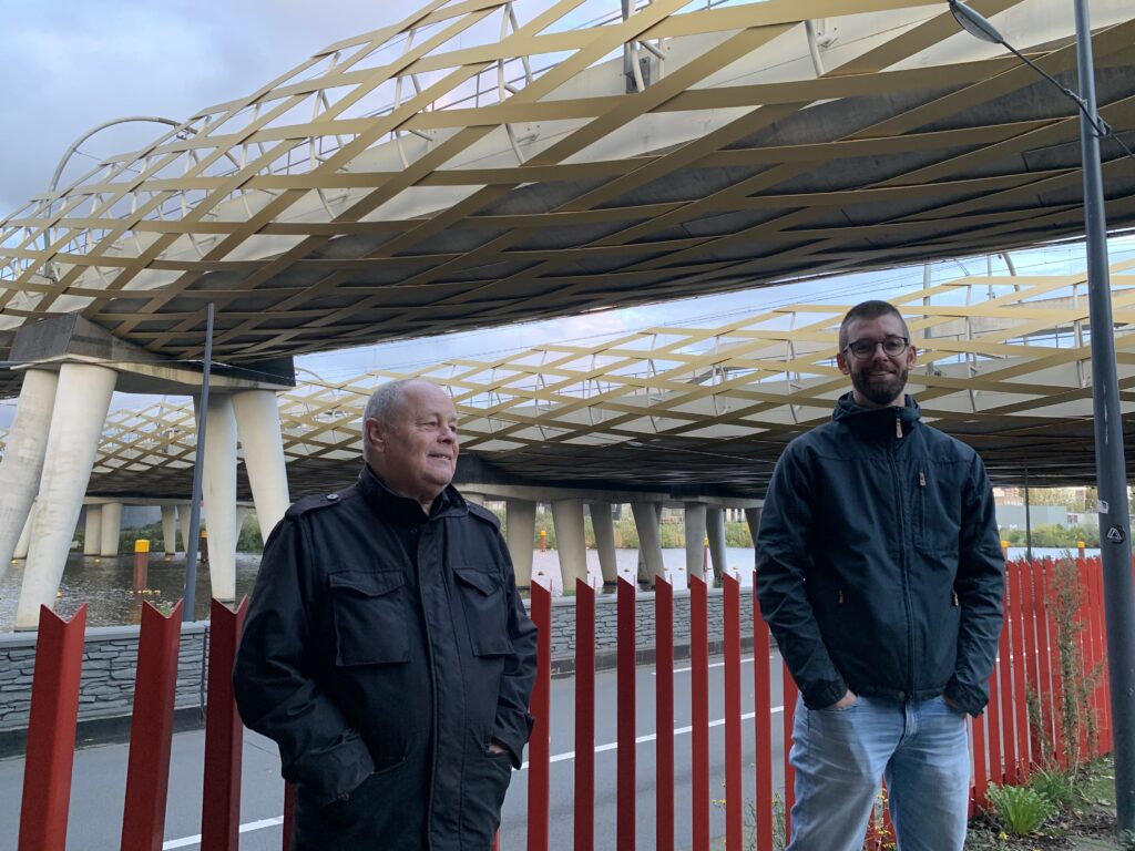 De opvallende vlechtwerken op weg naar de Ertveldplas, waar we al sinds 2013 onderdoor roeien, zijn een ontwerp van Architectenbureau